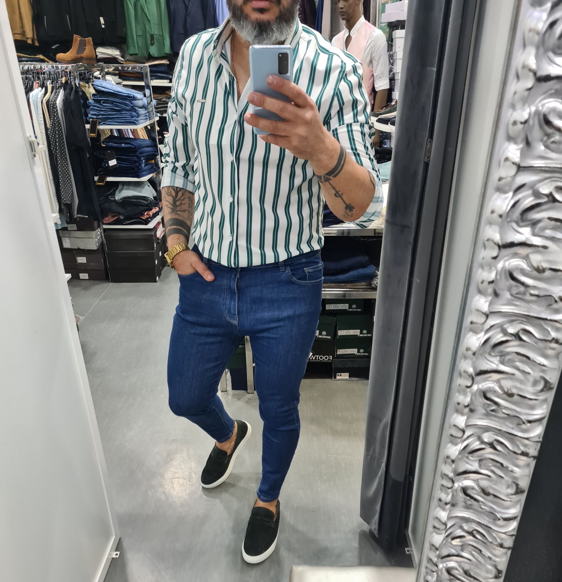 Calças slim fit estilo retro 37,50 € Desconto de %. 98%ALGODÃO 2%elastano Ler mais tamanho 36 Quantidade Comprar Contactar Marca GALERIAS MARTINS Características Partilhar