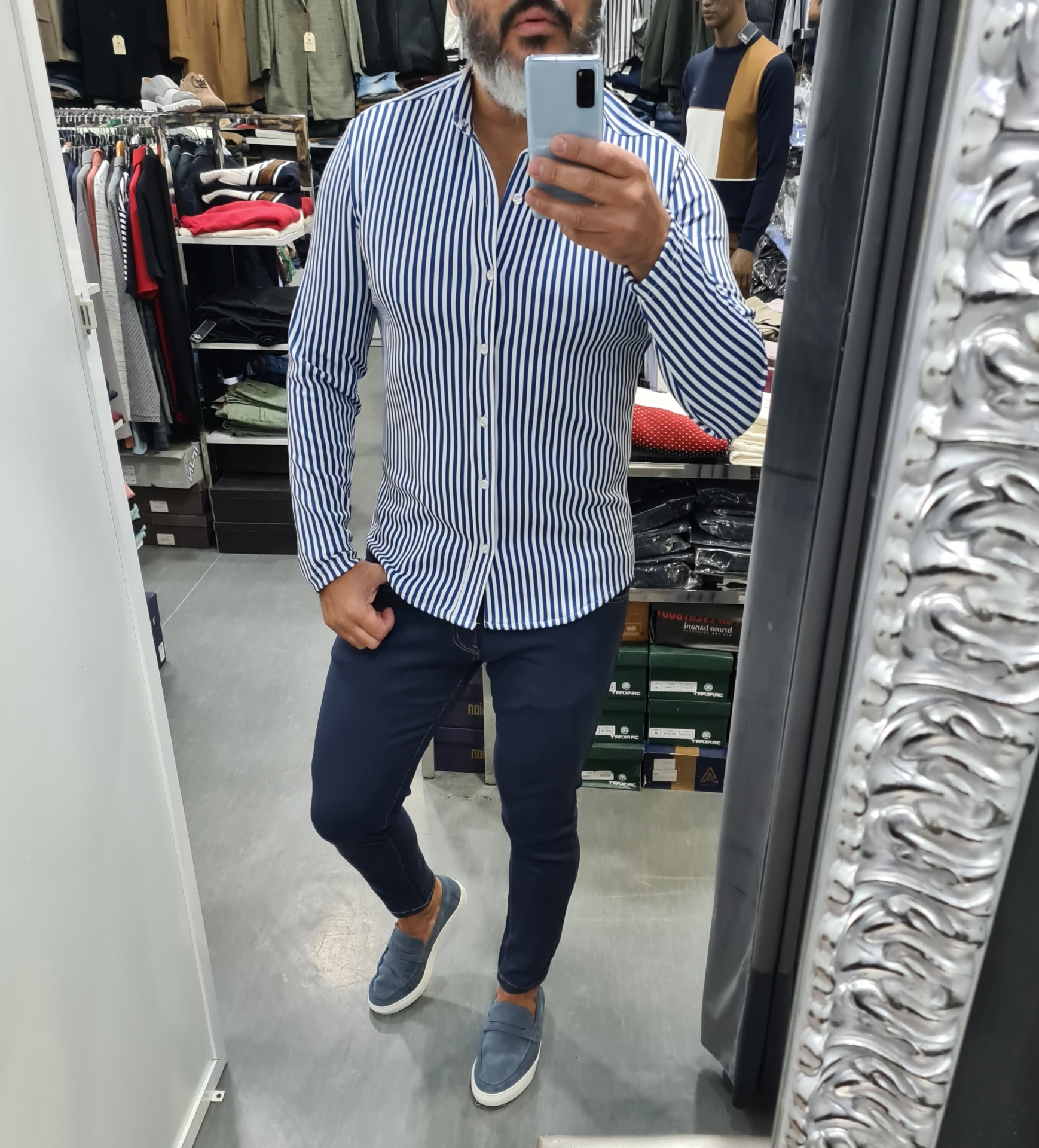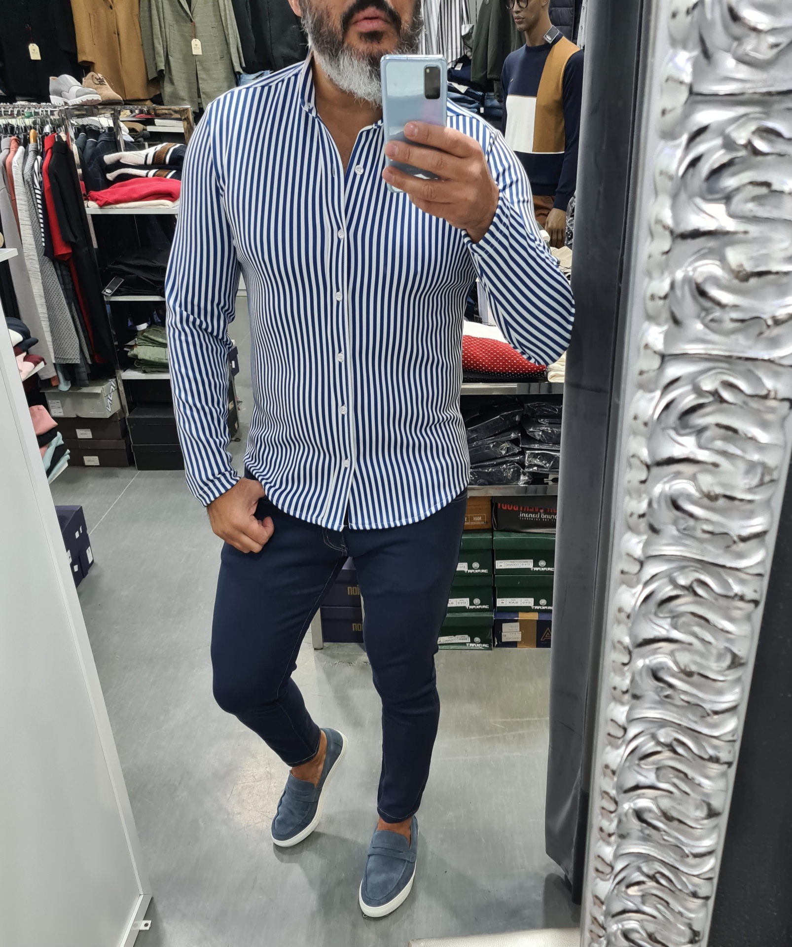 Camisa em malha slim fit ,risca azul 27,50 € Desconto de %. 90%poliester 10%ELASTANO Ler mais TAMANHO XXL Quantidade Comprar Contactar Marca GALERIAS MARTINS Características Partilhar