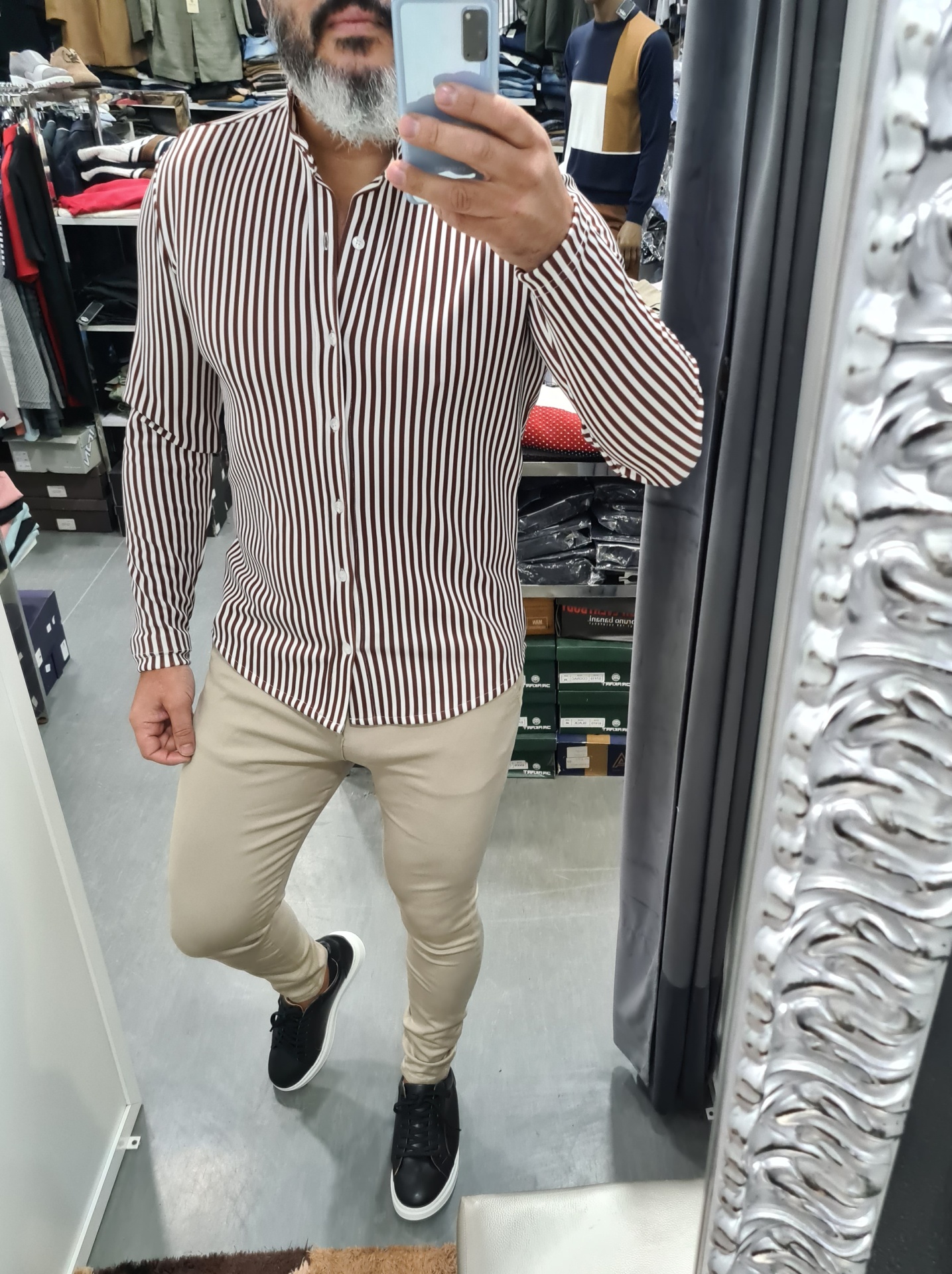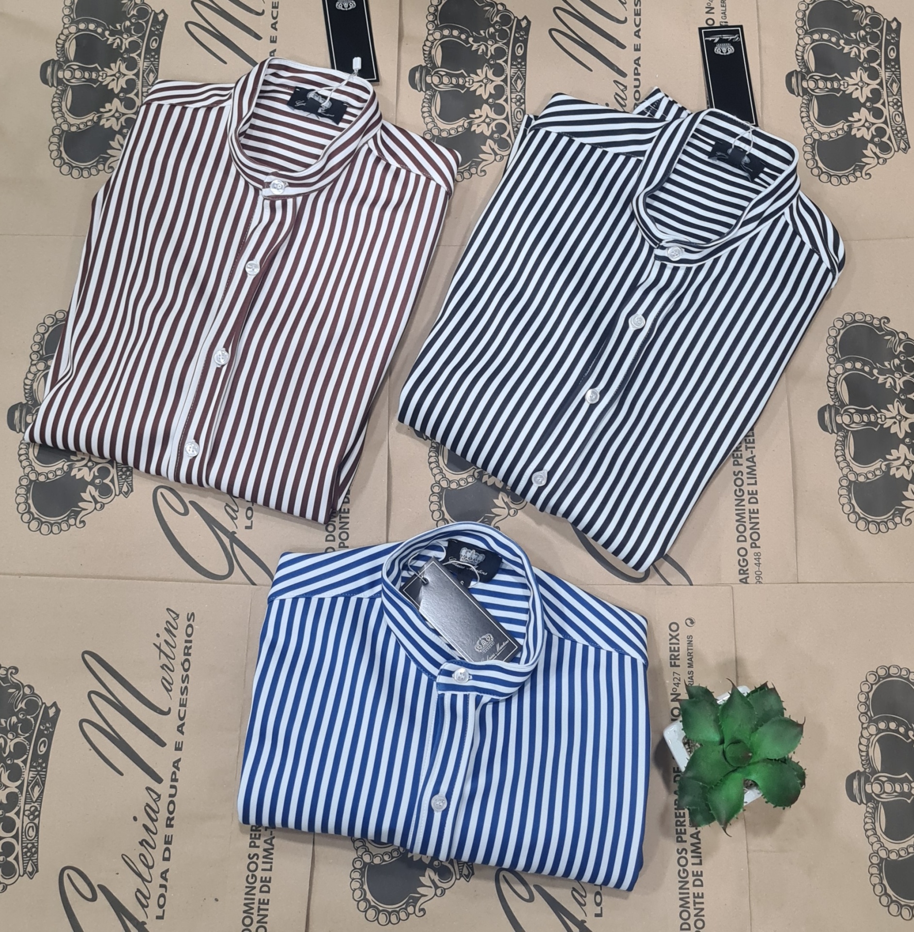 Camisa em malha slim fit ,risca castanho 27,50 € Desconto de %. 90%poliester 10%ELASTANO Ler mais TAMANHO XXL Quantidade Comprar Contactar Marca GALERIAS MARTINS Características Partilhar