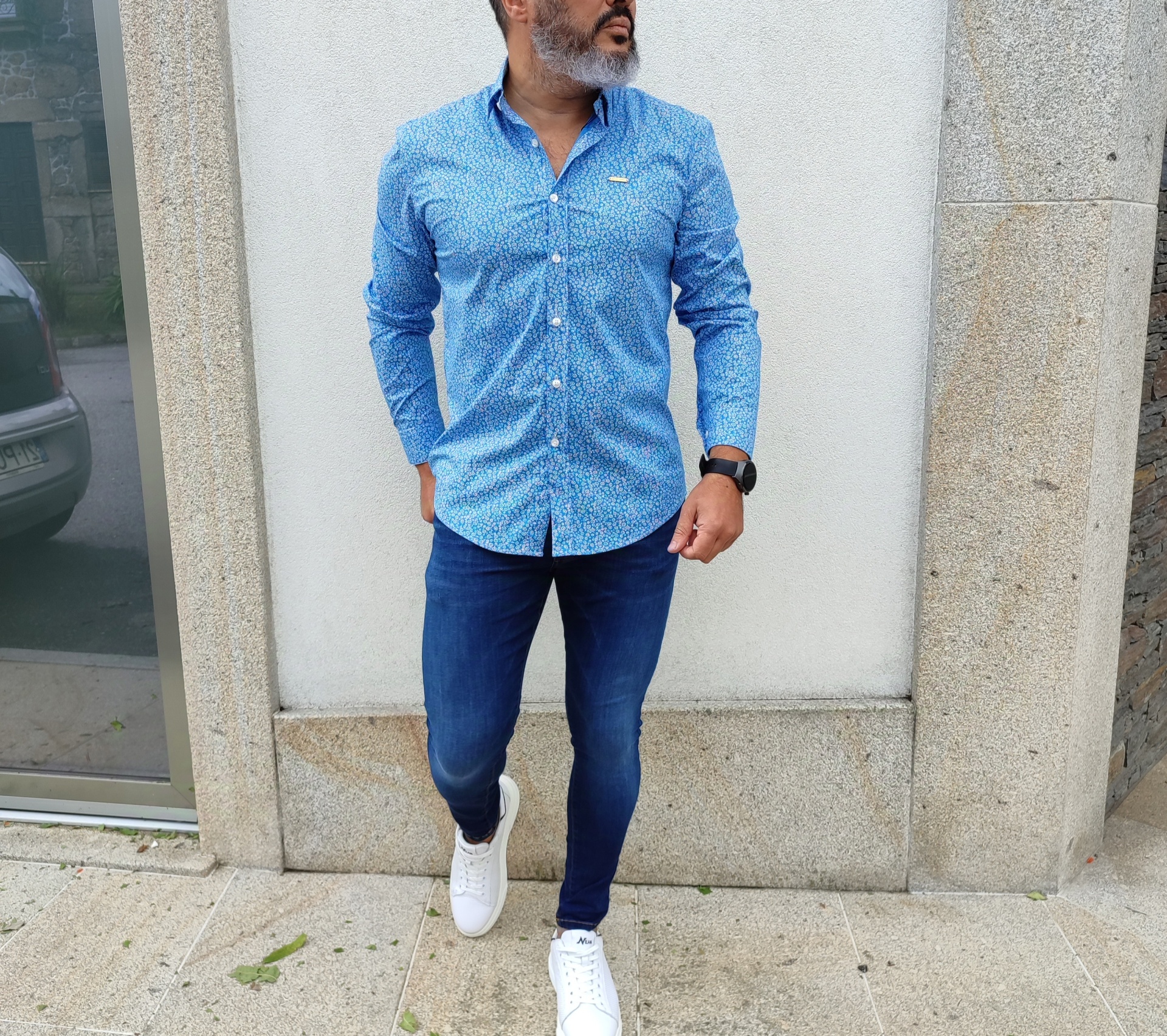 Camisa slim fit, azul 30,00 € Desconto de %. 96%ALGODÃO 4%ELASTANO Ler mais TAMANHO S M L XL XXL Quantidade Comprar Contactar 1 unidades em stock Marca GALERIAS MARTINS Características Partilhar