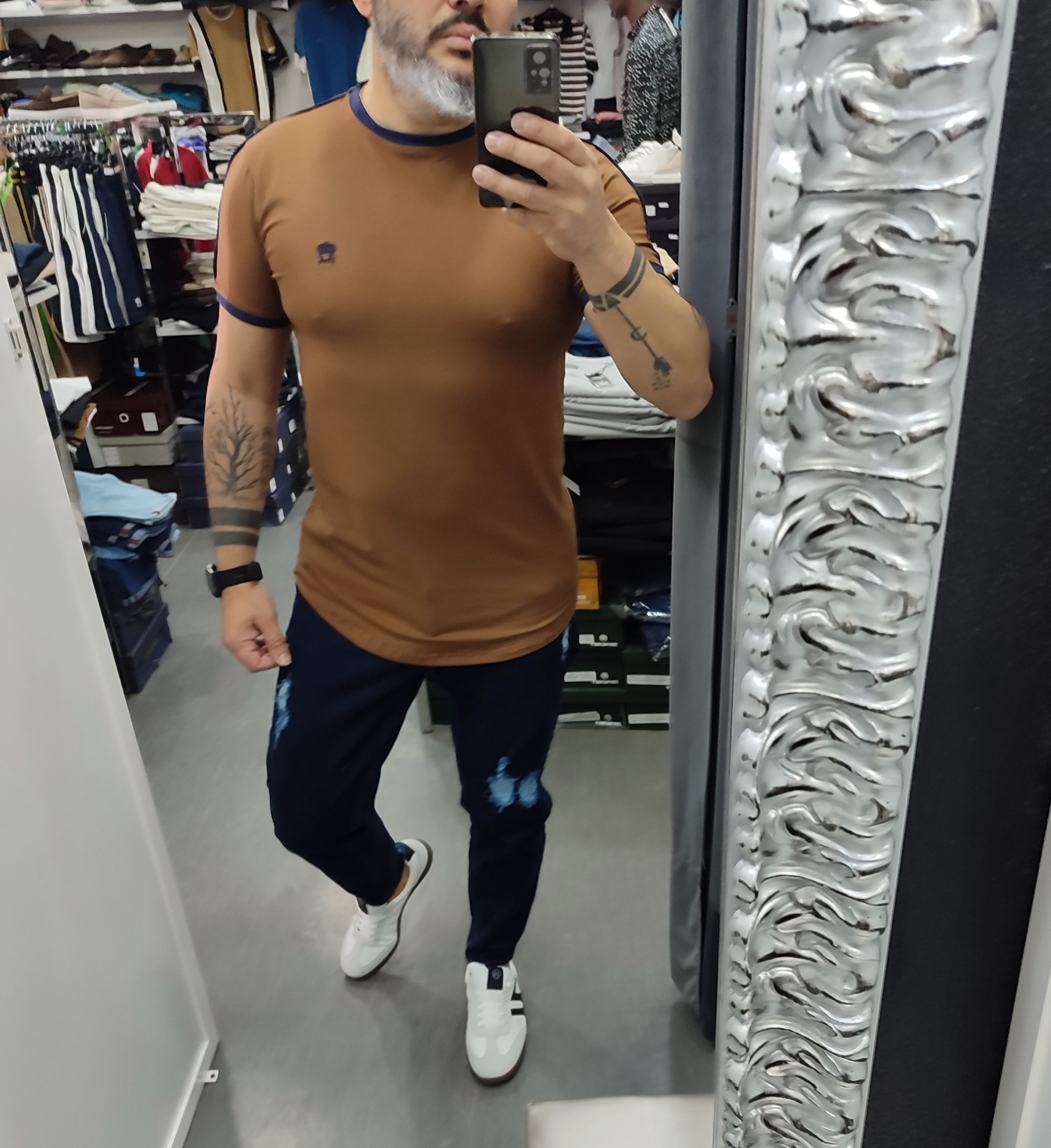 T shirt camel slim fit, veste justo 17,50 € Desconto de %. 90%ALGODÃO 10%ELASTANO Ler mais tamanho S M L XL xxl Quantidade Comprar Contactar 1 unidades em stock Marca GALERIAS MARTINS Tags slim fit Partilhar