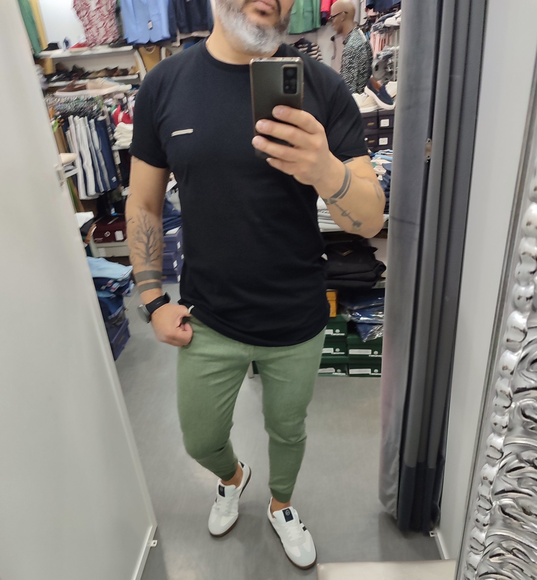 T shirt preto slim fit, veste justo 15,00 € Desconto de %. 100%ALGODÃO Ler mais tamanho L XL xxl Quantidade Comprar Contactar 1 unidades em stock Marca GALERIAS MARTINS Tags slim fit Características Partilhar